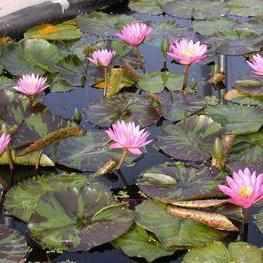 The 'Queen of Siam' water lily is a day-blooming tropical lily, and has double, star-shaped, vibrant pink flowers, with notes of green in the outer petals. These beautiful 6 to 8 inch blooms are arranged above highly mottled lily pads. This viviparous lily has a medium to large spread, and is ideal for medium to large ponds.