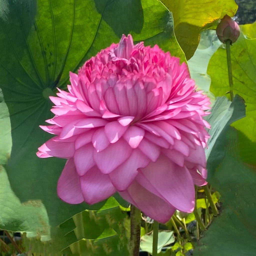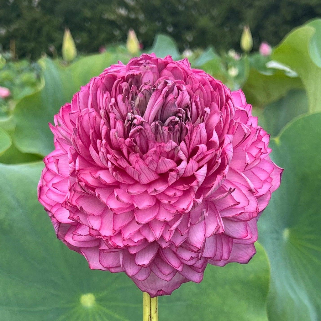 Ultimate Thousand Petals was discovered by Dr. Daike Tian in Southern China in 2009. It is a large-sized lotus with a multi-petal pink flower composed of up to 1650 petals. The flower is very long lasting - in fact, some of the outer petals will begin to drop before the flower opens fully so we sometimes open this one by hand so we can enjoy it longer. We definitely suggest a larger pot with deeper soil for this lotus because the flowers are so big and heavy that they will fall over without the extra support! You can also tie the flower stem (peduncle) to several leaf stems to help keep it upright.