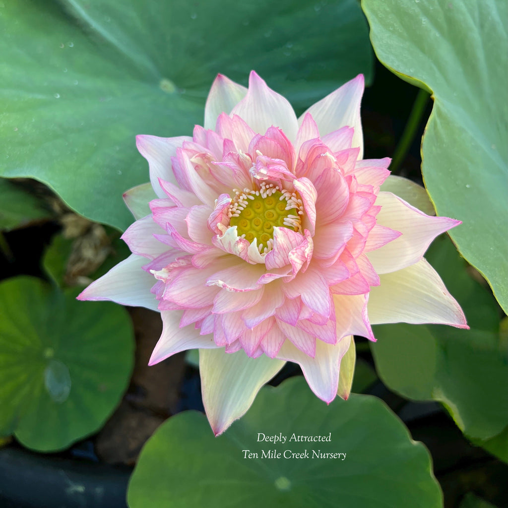 This lovely new variety opens with rich pink color on lanceolate (long, pointed) petals. Once the bud opens you will definitely understand where it got its name -- it is impossible to see the flower without falling in love with it! Good flower production makes this lotus one to which you will be "Deeply Attracted".