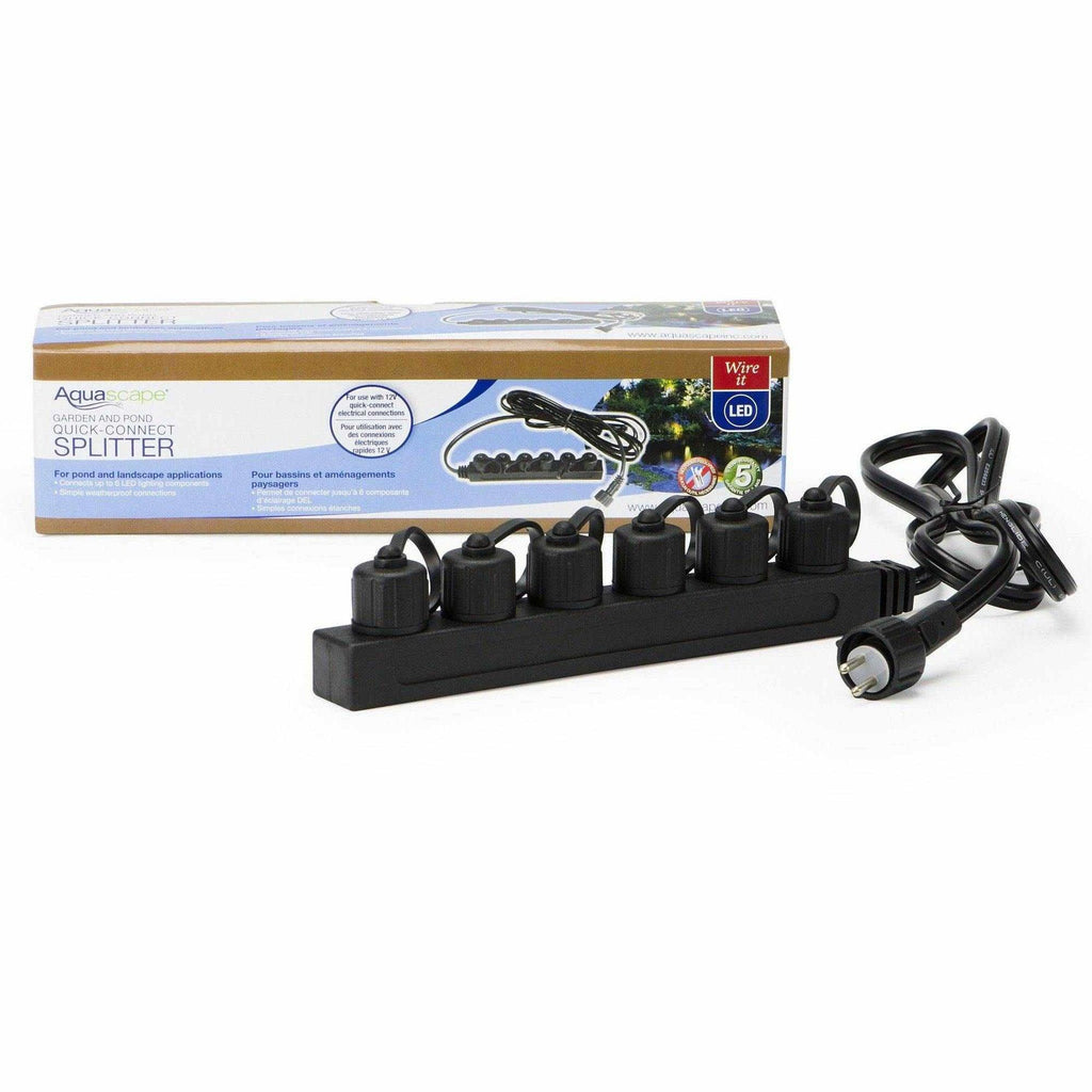 The Aquascape 6-way splitter provides a simple connection of 6 light fixtures to a single transformer. Quick-connect fittings make installation simple and easy. Completely eliminate the need to cut wires to connect your pond lights. Multiple 6-way quick connect adapters can be chained together to attach additional fixtures. The 36" cord length makes it easy to maneuver the splitter during installation. Aquascape is passionate about the products we produce, providing unique products, designs, and features that stand above the competition.