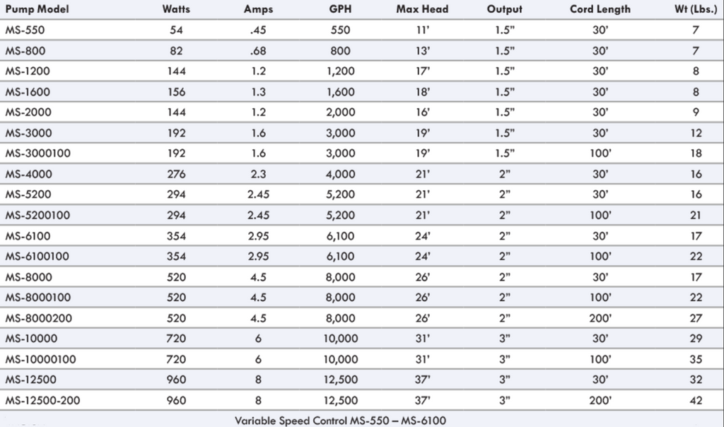 MS-12500 960 Watts 12500gph 37' 3" 32lb