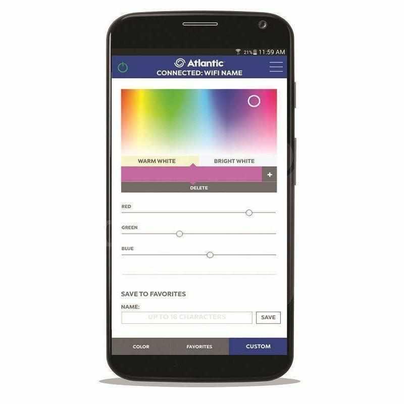 Atlantic Water Gardens new LED lighting system has been redesigned with all-new hardware and smartphone control options. Solid brass construction supplies optimal heat dissipation, corrosion resistance and long-lasting service. Silicone gaskets and precision lenses guarantee weatherproof, waterproof endurance. The InfiColor Smart Module allows you to program up to 120 Watts of lighting via your smartphone (compatible with Android and Apple devices). Control colors, sequences, brightness and transitions for up to 3 independent zones!