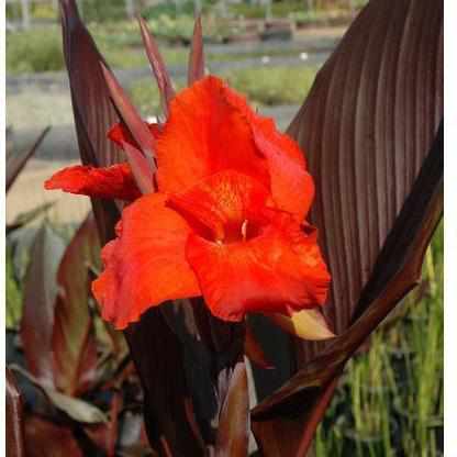 This canna features burgundy-black leaves that hold their color well through summer. Stunning orange-red flowers top burgundy-black stems from mid-summer to fall.