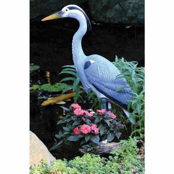 Deters herons from coming to your pond by tricking them into thinking another heron is already there.