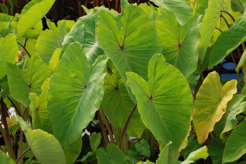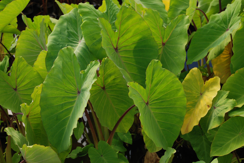 Elena transforms your pond, water feature into a tropical experience with emerald green foliage and contrasting purple markings. Easy to grow and grows quickly, attributes become more intense when plant matures. Very moist to boggy areas, part sun to part shade. up to 4' tall, Zone 8-10