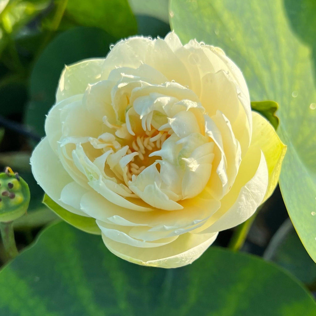Love sunny yellow but don't have room for a large lotus? 'Gold & Resplendence' will be perfect for you! Extra-light yellow petals make a perfect frame for green petaloids. This lotus can also form a seed pod that has a red stain for several days. Perfect for small spaces! While the plant may be small, the flowers are huge in comparison and it blooms all the time!!