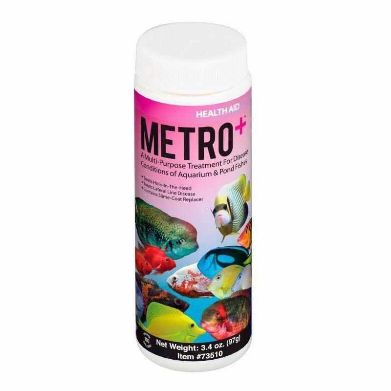 Metro+ is a powdered formula that was developed to offer the hobbyist an effective way to treat lateral line and hole-in-the-head diseases suffered by their pond, freshwater or marine fishes. This revolutionary, extremely safe and super effective product offers you benefits no other similar medication can!