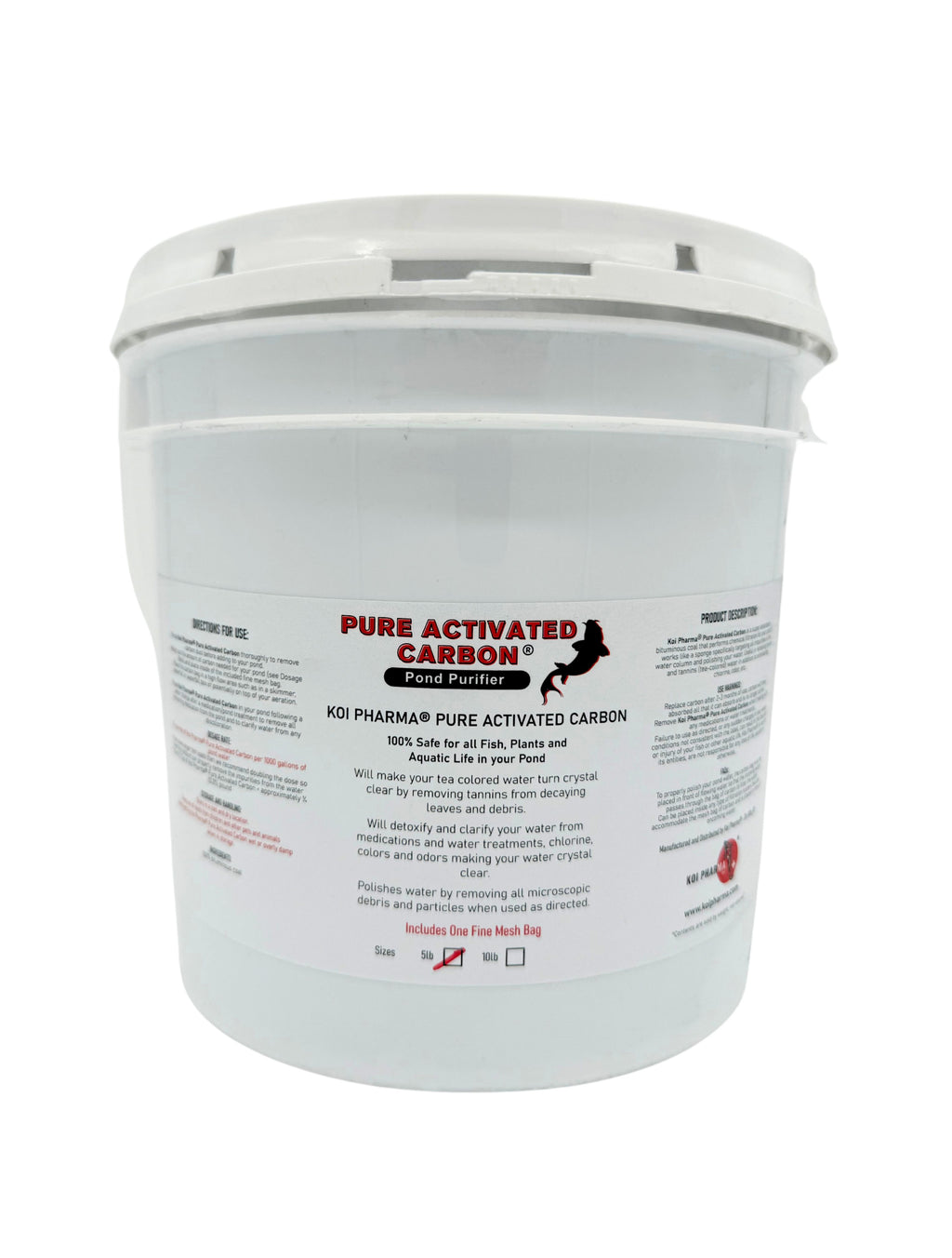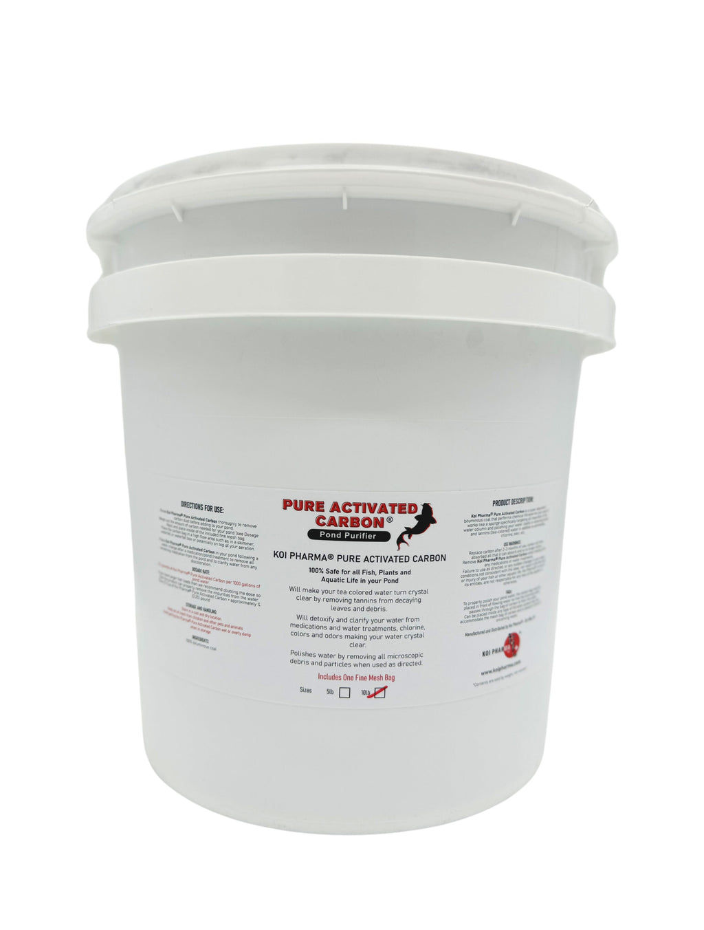 - Use 2.5 pounds of Pure Activated Carbon per 1,000 gallons of pond water. For larger fish loads, double the dose for optimal impurity removal.