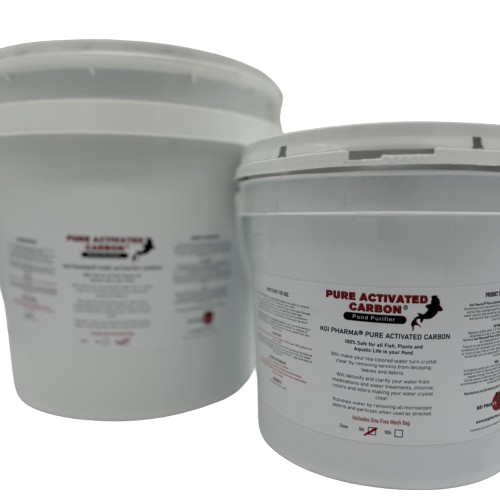 Product Description: Transform your tea-colored pond water into crystal clear water with Koi Pharma® Pure Activated Carbon. This highly absorbent bituminous coal performs chemical filtration, removing tannins from decaying leaves and other debris. Acting like a sponge, it targets all impurities in the water column, detoxifying and clarifying your pond water from medications, treatments, and odors. Use it routinely to polish your water, ensuring it remains clear and free from microscopic debris.