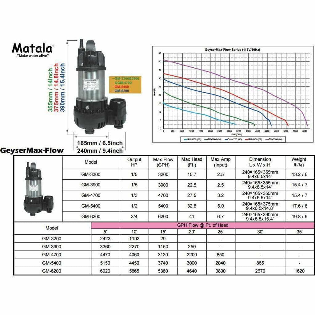 Size: GM-3200 Matala Geyser Max-Flow Submersible Pump