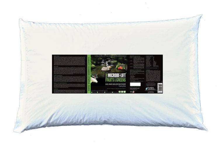 As far as we know, Microbe-Lift is the first fish food manufacturer to commercially produce this type of food. Variety is the spice of life. If you don't have time to cut up fruits and vegetables for your pond fish, give them this "fruits and greens" blend. We've done the cutting and blending for you. There are apples, apricots, kiwis, mango's, papayas, peaches, pears, broccoli, cabbage, peas, red peppers, tomatoes, zucchini and spinach in this scientific blend.