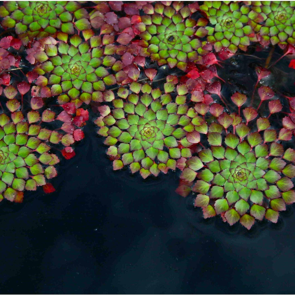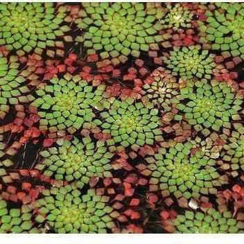 The 3" round clusters of small red and green leaves make the Mosaic pond plant a favorite. The diamond-shaped leaves grow from a central radius, forming a mosaic-like pattern. The mosaic plant is intolerant of alkaline water and will die if the pH is above 8. Will thrive in warm temperatures of 70º F and above, in a sunny to partly shaded location. This unusual and attractive Mosaic water plant can be placed on the surface of the water or planted as a tropical bog plant. It will spread to cover 24" in a single season.