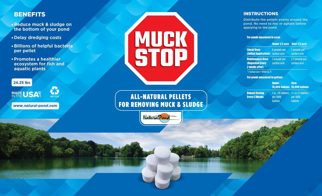 MuckStop™ All-Natural Pellets were meticulously designed to deal with muck. The slow-release tablets unleash 6 strains of beneficial bacteria that reduce the sludge that pesters your pond. This safe, effective product was developed by aquaculture experts to bring the best results to your pond and lake.