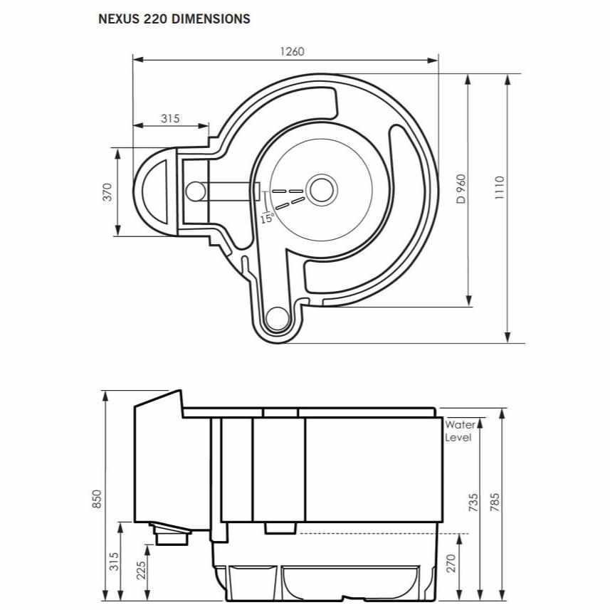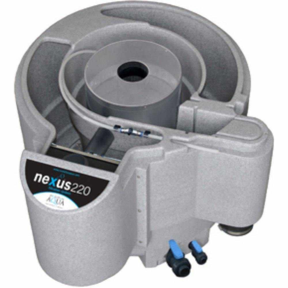 The Eazy Filter: The Eazy is a stainless steel vessel containing a set volume of K+ Media (20 litres in the Nexus 320 and 18 litres in the Nexus 220) which is located within the inner chamber of the Nexus. After water enters the Nexus it rotates around the Eazy in the inner chamber with a downward motion allowing the larger solids to settle to the bottom of the chamber before passing through the slots of the Eazy into the static K1 Micro. The water flows from all angles through the K1 Media where improved mechanical filtration and settlement take place and fine particles are caught within the K+ Media. The water then flows through the slots in the center column and into the outer chamber. Biological Filtration - K1 Moving Bed: The outer chamber of the Nexus contains the moving bed of K1 Media. 100 litres of K+ Media is supplied with the Nexus 320 with the option to add an extra 200 litres of K1 Media, micro k1 media, or K+ media should it be needed. The Nexus 220 is supplied with 50 litres of K+ Media, with the option to add an extra 100 litres of K1 Media if needed. This allows the biological capability of your filter to grow with your fish. The outer chamber is where the final stage of biological treatment occurs. Biological breakdown occurs through different strains of bacteria living on the protected surface area on each piece of the K+ Media. These bacteria convert Ammonia and Nitrite into harmless Nitrate. The amount of Ammonia and Nitrite produced in the pond is dependent on feed rates and the type of food used. For higher feed rates additional K1 Media should be added into the outer chamber. Air Pump Requirements: You can increase the biological capacity of your Nexus by adding additional K1 Media into the outer chamber. You will, however, need to ensure that you have the correct size of air pump to enable the K1 Media to move sufficiently (see table for recommended size of air pump). For Nexus filtration systems straight out of the box with no additional media added, we recommend an Air Pump 75 to power the moving bed in a Nexus 220 and an Air Pump 95 for a Nexus 320. |