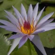 The 'Blue Star' water lily is a splendid day-blooming tropical lily, whose flowers are produced in bright violet-blue, star-shaped blooms of 4 to 6 inches. The leaves a a deep dark green. This lily has a medium spread, and is great medium ponds.