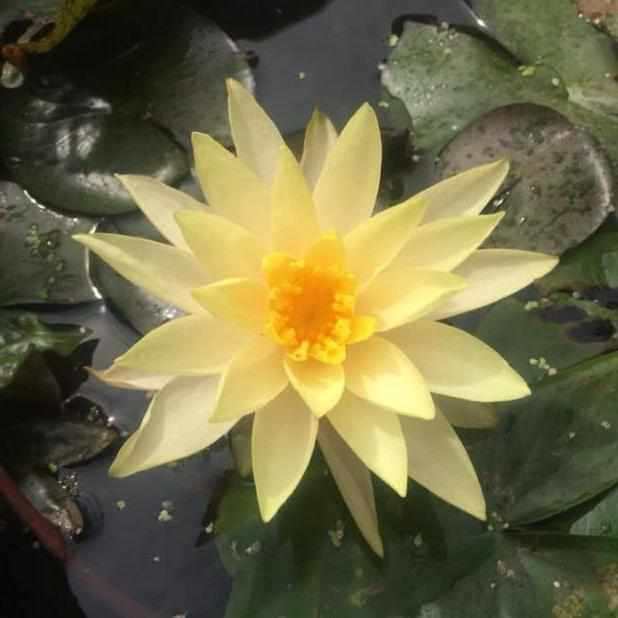 Delicious looking Peachy Blooms stand above the foliage and stay blooming until late in the season with proper feeding. Green leaves. Can grow 3-5 feet wide in full sun in 6-24 inches of water. Good for medium ponds.