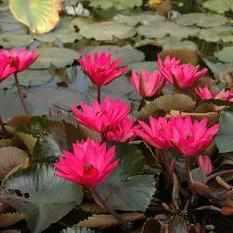 The 'Red Cup' water lily is a night-blooming tropical lily, that has beautiful, cup-shaped, strong, red-rose blooms, of 4 to 6 inches, that are held above reddish-bronze colored lily pads. It has a medium spread, and is ideal for medium to large ponds.