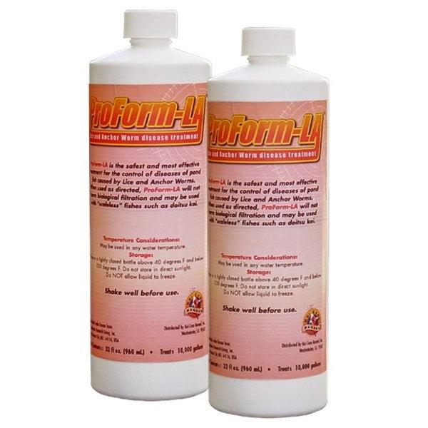 ProForm-LA, made by Koi Care Kennel, is the safest and most effective treatment for the control of diseases of pond fish caused by Lice and Anchor Worms. It is just as safe to use on pond fish as Dimilin, yet it is much safer for human contact. It will not harm reptiles (turtles), amphibians (frogs), and mollusks (snails).
