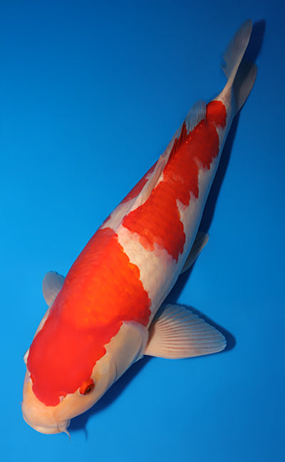 This is a one-of-a-kind Kohaku bred by the legendary Torazo Koi Farm. This beautiful male, born in 2023 and currently measuring 19.5" inches (50.0 cm), is a Kohaku, a stunning example of its variety and an absolute showstopper.