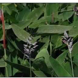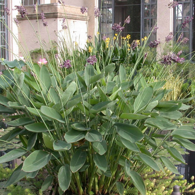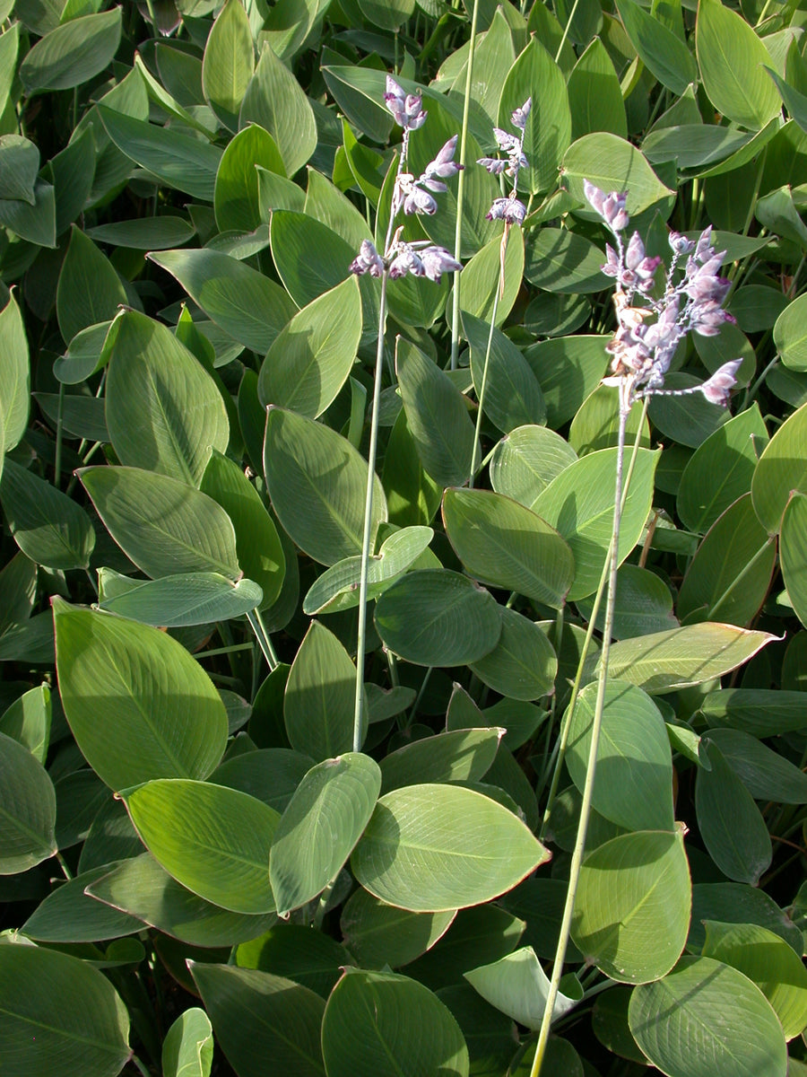 Hardy Water Canna, also known as ‘Powdery Thalia’, is a rhizomatous marginal aquatic plant that features canna-like foliage and violet-blue flowers. Foliage and flowers are dusted with a fine white powder.