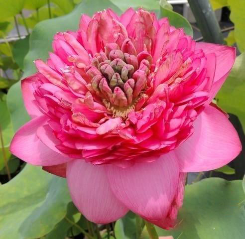 Averaging more than 315 petals per flower with large red large petaloids in the center, this massive purple-violet flower is really one of a kind. Some of the petaloids will have a green/yellow stripe for extra flair. 'Zhongshan Duplicate Red' is a duplicate-petaled flower which generally means it will not produce seeds.